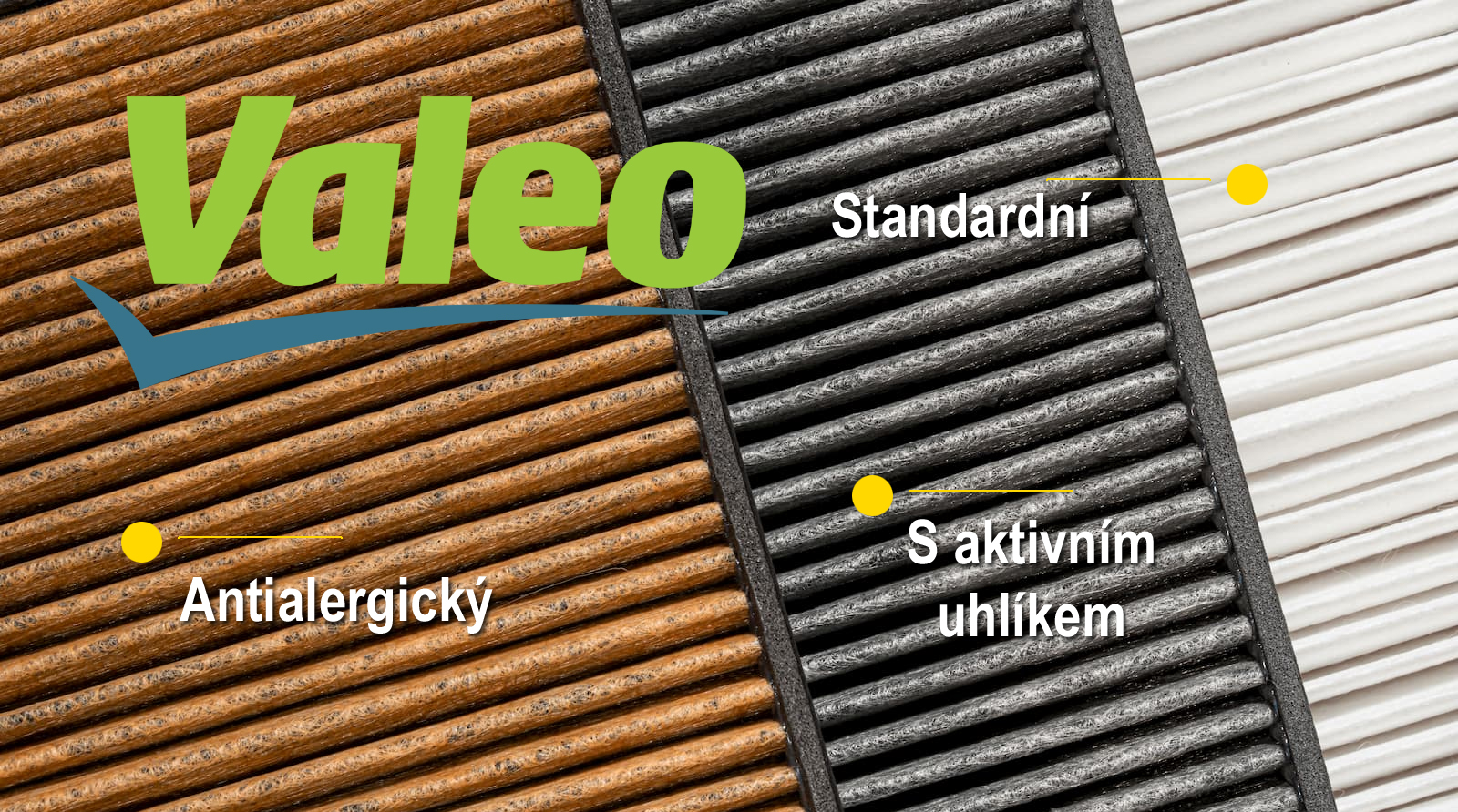 Porovnání a vlastnosti 3 řad filtrů společnosti Valeo